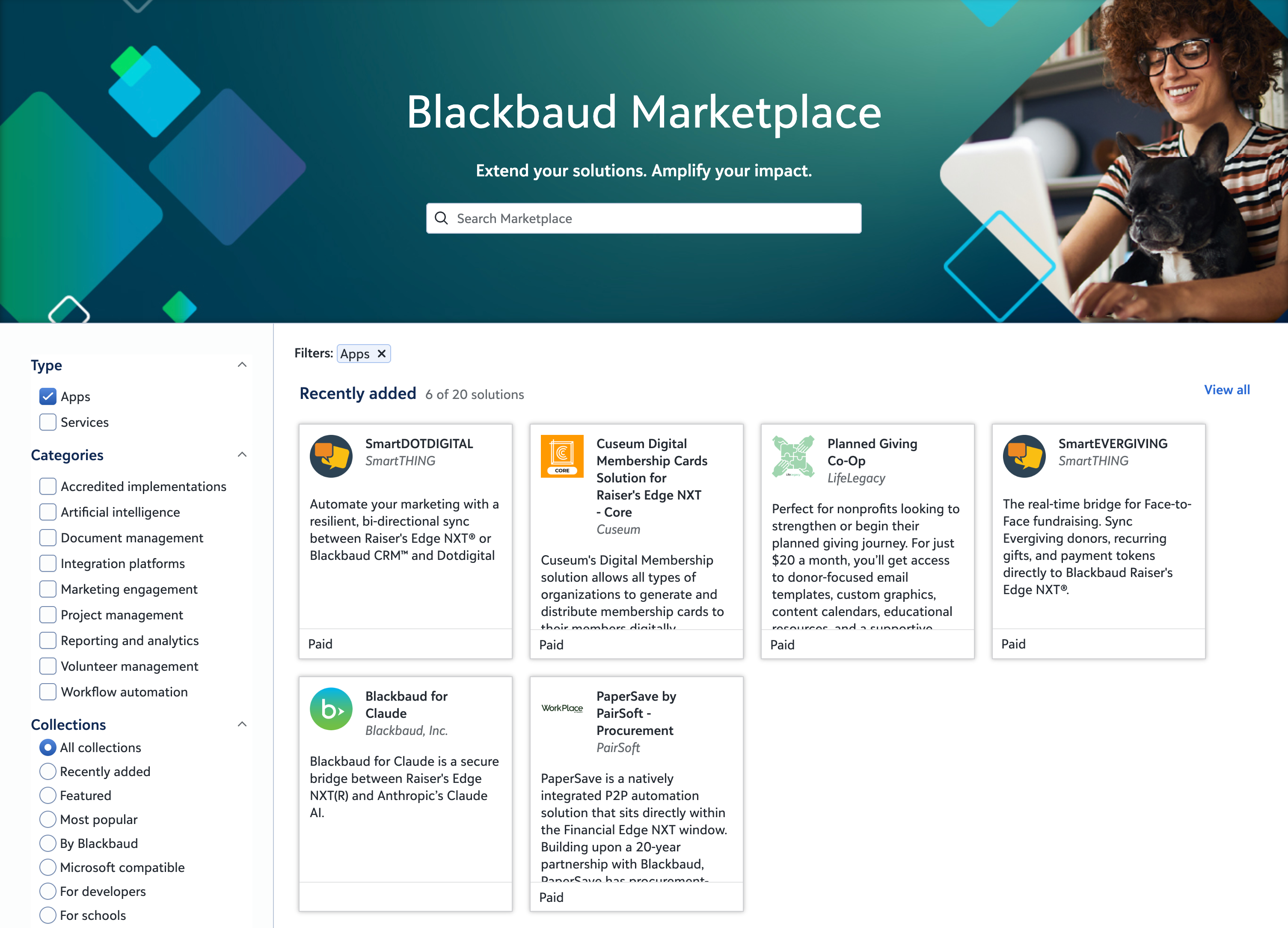 Blackbaud’s marketplace supports integrations for nonprofit and education organizations.