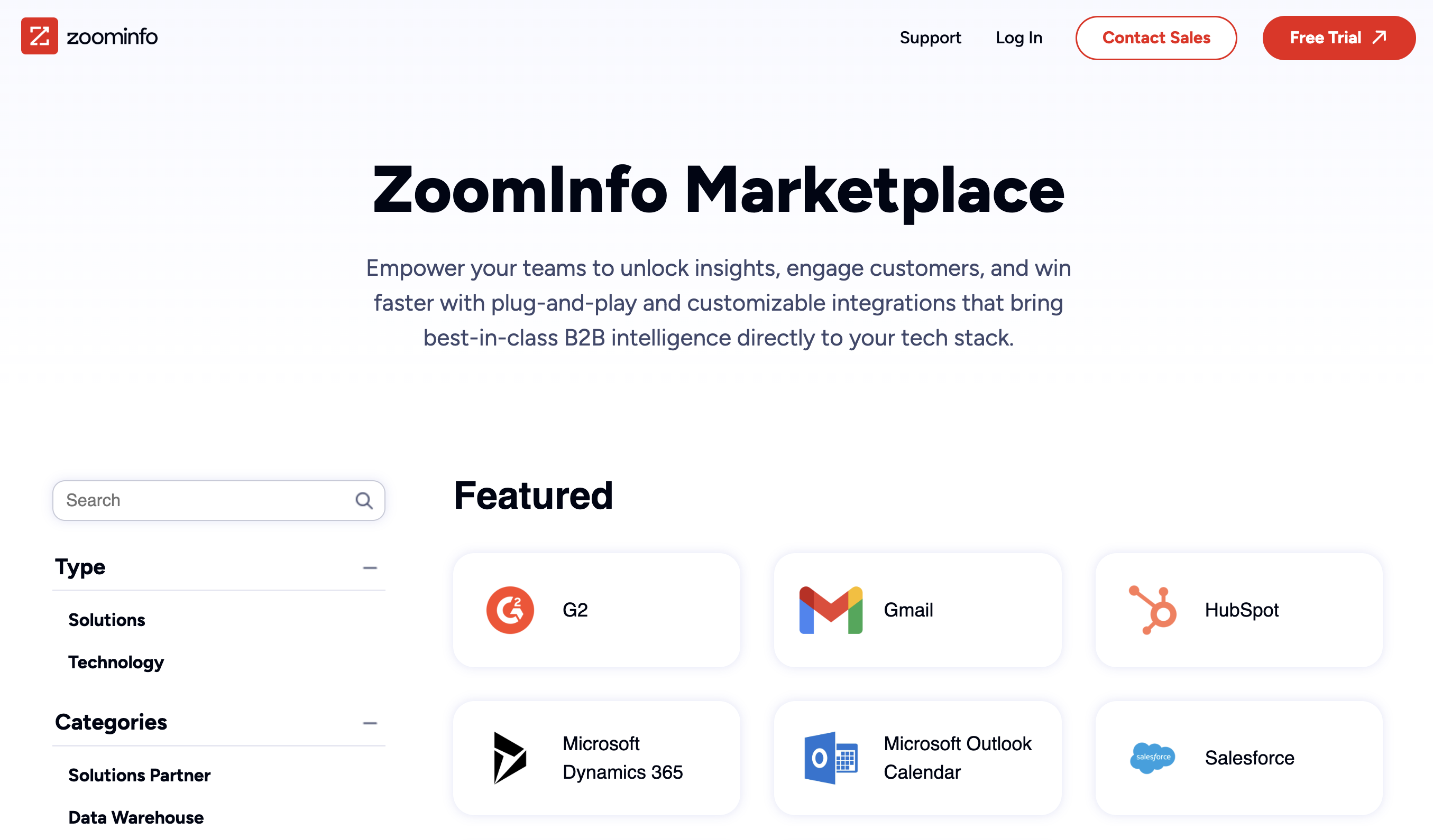 That restraint matters. A marketplace should help users find solutions, not make them work for it. ZoomInfo’s design keeps the focus where it belongs, on integrations and outcomes, not UI chrome.